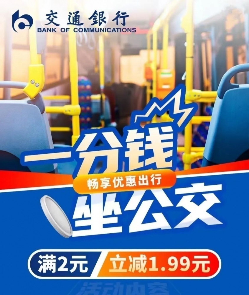 使用交通銀行手機(jī)APP出示付款碼乘車(chē)可享滿(mǎn)2元立減1.99元優(yōu)惠。活動(dòng)總名額10000個(gè),單用戶(hù)每日可享受1次優(yōu)惠,每月可享受10次優(yōu)惠,名額有限,先到先得。