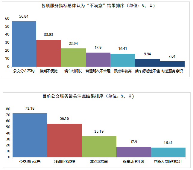 本次調(diào)查共收集有效問卷1471份,623條相關(guān)問題及建議。問卷涵蓋公交線網(wǎng)優(yōu)化、文明服務(wù)、換乘便捷度、候車時(shí)間、乘車舒適度、智能信息建設(shè)等多方面內(nèi)容。調(diào)查顯示,參與投票人群年齡結(jié)構(gòu)主要集中在18~59歲,其中以40~59歲為主體。(一)公交服務(wù)滿意度指標(biāo)及數(shù)值根據(jù)交通運(yùn)輸部GB/T 36953.2-2018城市公共交通乘客滿意度評(píng)價(jià)方法,公共交通乘客滿意度指乘客對(duì)公共交通服務(wù)質(zhì)量的滿意程度,評(píng)價(jià)程度設(shè)置為“很滿意”、“滿意”、“一般”與“不滿意”。問卷顯示荊門公交服務(wù)整體滿意度為91.96%。問卷顯示公交線網(wǎng)分布不均、線路不合理、換乘不便捷為主要服務(wù)訴求,公交線路分布不均為“不滿意度”投票最高問題;主干道公交優(yōu)先通行權(quán)為服務(wù)訴求投票最高關(guān)注點(diǎn)。 此次問卷調(diào)查,感謝廣大市民乘客的積極參與,市公交集團(tuán)將結(jié)合實(shí)際,認(rèn)真聽取、采納乘客提出的意見及建議,予以改進(jìn): 關(guān)于線路運(yùn)營(yíng)方面,對(duì)5路線(圣境山—?;郏?8路線(東寶碧桂園—楊家橋)、58路線(碧桂園北—漳河新區(qū)政務(wù)中心)、59路線(荊楚理工學(xué)院—掇刀區(qū)政務(wù)中心)早中晚客流高峰期加密營(yíng)運(yùn)班次和增設(shè)區(qū)間班次,對(duì)33路線(楚天學(xué)?!d化三路東)、69路線(雙喜小學(xué)—園博園東門)、13路線(牌樓—園博園西門)進(jìn)行線路優(yōu)化,方便沿線居民出行需求;近期擬開通碧桂園翡翠公館至長(zhǎng)崗萬人社區(qū)、東寶政務(wù)中心至市政務(wù)中心公交線路,具體方案正逐步規(guī)劃中。