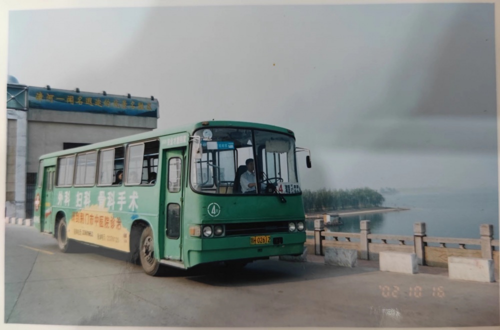 ▲90年代末,荊門(mén)市海慧公交停車(chē)場(chǎng)。4路車(chē)準(zhǔn)備發(fā)車(chē)(?;邸暮樱?。