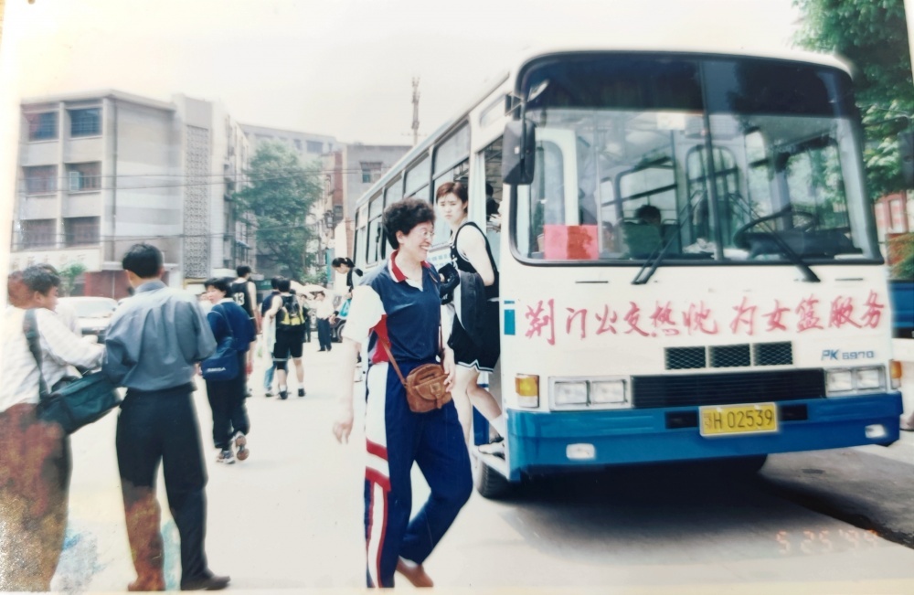 ▲1999年5月25日,到達(dá)荊門石化體育館。遠(yuǎn)處看女藍(lán)隊(duì)員走過公交車,個(gè)頭真的高。