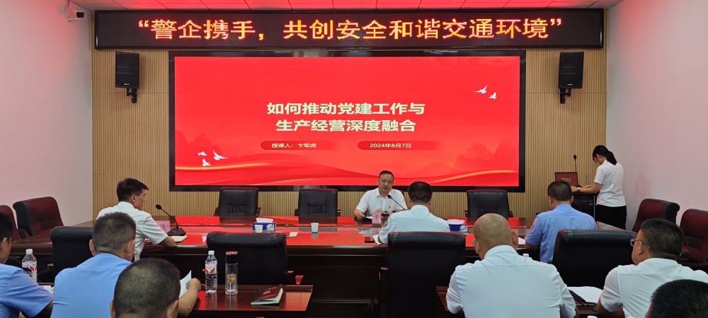 卞軍虎以《如何推動黨建工作與生產(chǎn)經(jīng)營深度融合》為題,從“五個堅持,四個必須”全面分享了集團推動黨建工作和中心工作深度融合的具體實踐和有效措施。同時表明了集團黨委在“共創(chuàng)安全和諧交通環(huán)境”工作中愿意主動接受公眾和交警監(jiān)督的態(tài)度,希望加強與市公安局交通警察支隊掇刀大隊黨支部聯(lián)學(xué)聯(lián)做形式,在下一步集團“黨員示范線”黨建品牌創(chuàng)建中給予指導(dǎo)和支持。
