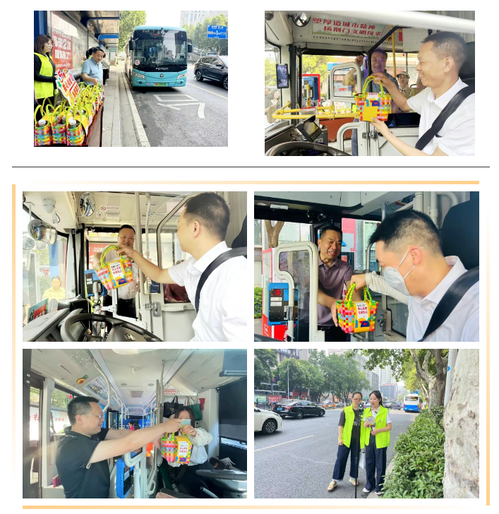 在公交樞紐站,青年志愿者向乘客發(fā)放定制宣傳扇,并邀請(qǐng)乘客在打卡區(qū)拍照留念,傳遞出公眾對(duì)駕駛員的認(rèn)可與支持,進(jìn)一步凝聚“關(guān)心關(guān)愛(ài) 與愛(ài)同行”的社會(huì)共識(shí)。