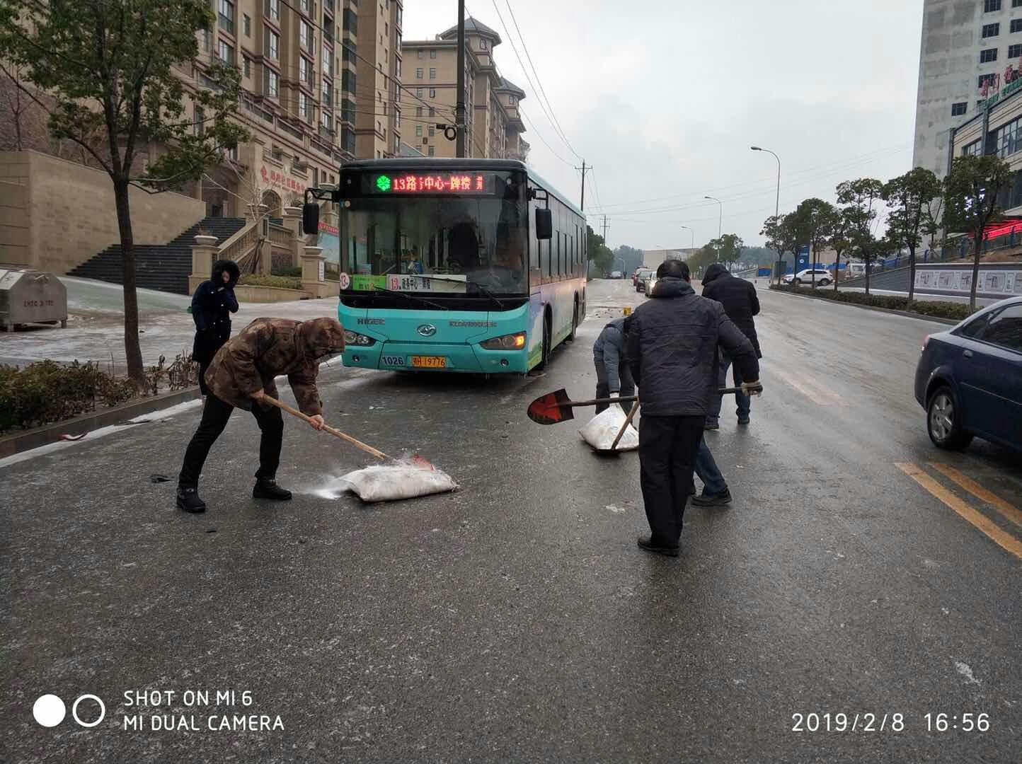 大年初四,降下風(fēng)雪,荊門公交集團為保障公交平安運行,公司領(lǐng)導(dǎo)的帶頭,放下了團年的飯桌上的碗筷,換成鐵鍬加入到除雪隊伍中來。他們不懼嚴(yán)寒,從下午13點堅持到18點,完成了福壽居、房產(chǎn)局、天鵝路等路面撒鹽除冰任務(wù)。