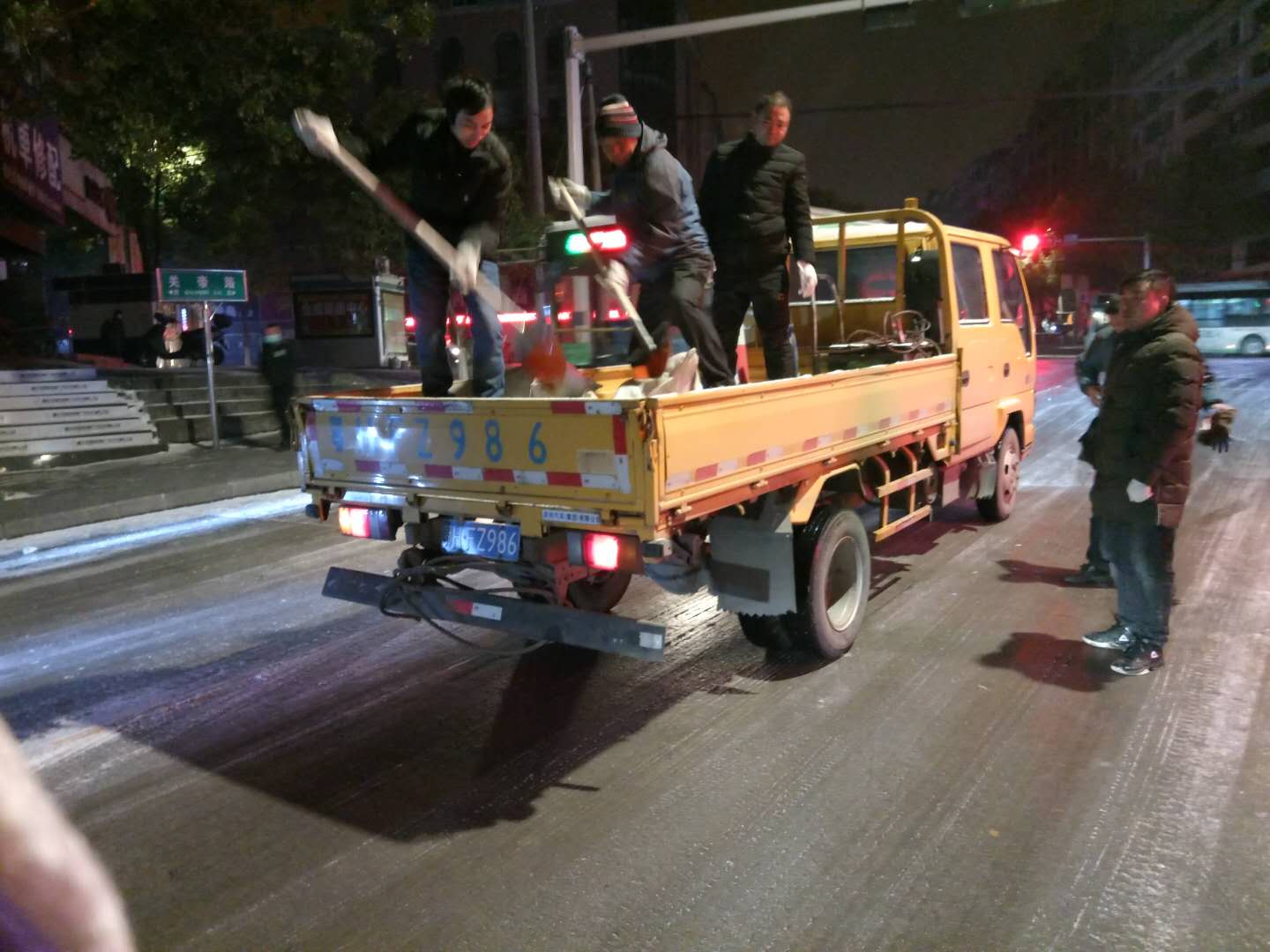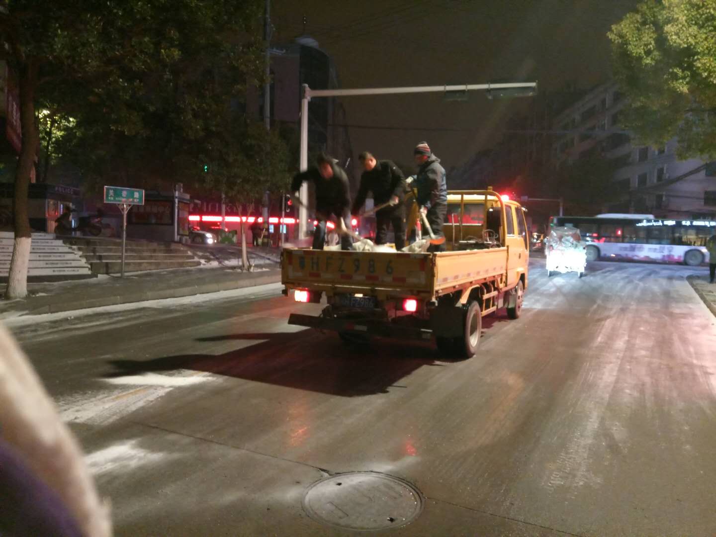 以雪為令!荊門公交人凌晨4點(diǎn)撒鹽除冰 確保市民平安出行