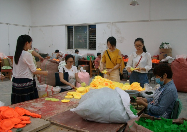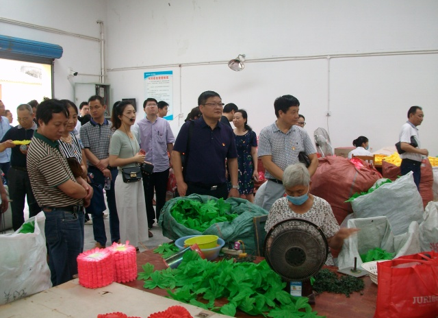 當日9時,在荊門市圓夢愛心幫扶會會議室中舉行了升旗儀式,黨員們重溫入黨誓詞,認真學習了習近平總書記視察湖北重要講話精神。隨后孟麗華介紹了市圓夢殘疾人庇護工場的相關(guān)情況,2014年,在孟麗華的牽頭下,籌建了一個助殘扶弱的公益組織,取名為荊門市圓夢愛心幫扶會,創(chuàng)辦了一個專門為殘疾人服務(wù)的庇護工場。為了更深入的了解市圓夢殘疾人庇護工場,黨員們在解說員的陪同下,參觀殘疾人員工的工作環(huán)境,還一起與員工們編織手工花朵,為工場打掃衛(wèi)生,清除雜草,給這些殘疾人員工一個更好的工作環(huán)境。