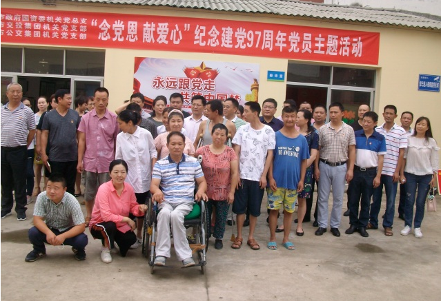 7月3日,為紀念中國共產(chǎn)黨建黨97周年,市政府國資委機關(guān)黨總支、市交投集團機關(guān)黨支部、市公交集團機關(guān)黨支部以“念黨恩、獻愛心”為主題,組織黨員們一同走進市圓夢殘疾人庇護工場,開展7月份黨員主題活動日活動。