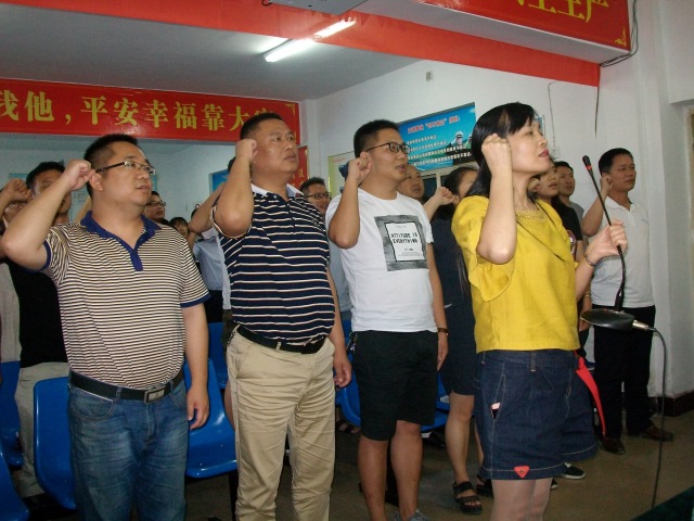 (圖為 新黨員宣誓,老黨員重溫誓詞)