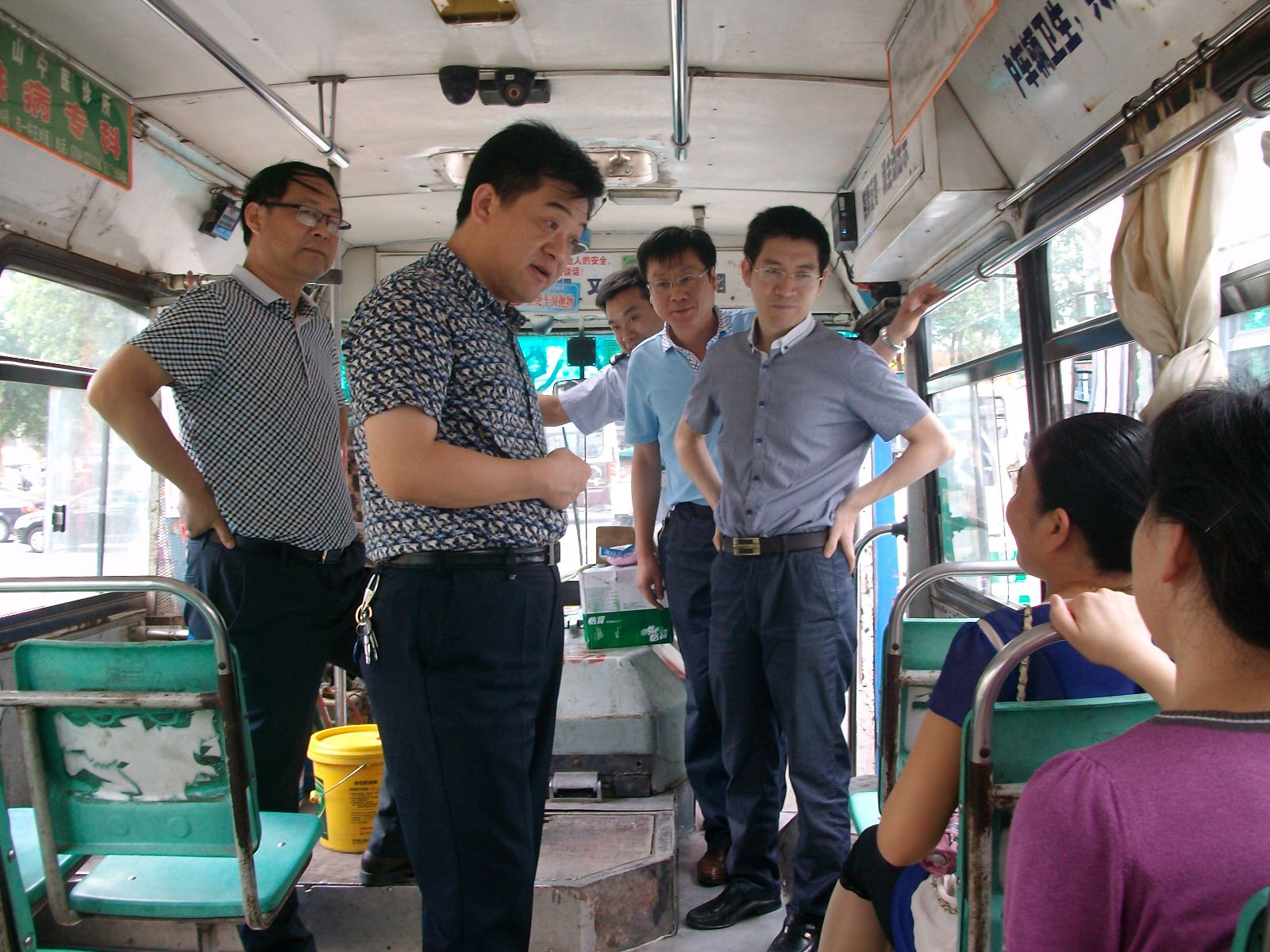 當(dāng)日中午12時(shí),正值高溫時(shí)刻,伍應(yīng)彪等領(lǐng)導(dǎo)冒著炎炎夏日來(lái)到海慧車(chē)站,看望慰問(wèn)高溫下堅(jiān)守工作崗位的公交職工。在16路、21路、22路線正待發(fā)班的公交車(chē)前,伍應(yīng)彪上車(chē)與一線駕駛員親切握手,詢問(wèn)了解駕駛員們的身體和工作情況,并聽(tīng)取了一公司負(fù)責(zé)人對(duì)改善職工們的工作和休息環(huán)境等工作匯報(bào)。在與駕駛員們親切交談中,伍應(yīng)彪親自為駕駛員們送上了礦泉水、毛巾、人丹、清涼油等防暑降溫用品。同時(shí),他還向部分乘客征求了改善乘車(chē)環(huán)境的意見(jiàn)和建議。
