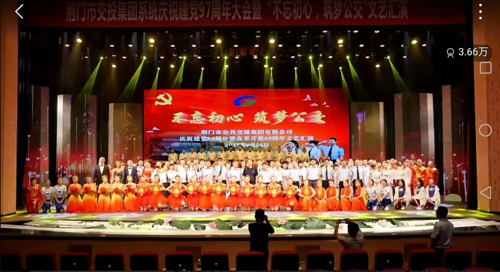 6月26日,市公共交通集團(tuán)有限公司在荊門劇院舉行慶祝建黨97周年表彰大會暨“不忘初心,筑夢公交”文藝演出,來自11個(gè)基層單位員工獻(xiàn)出了一場炫目多彩的紅色文化視聽盛宴。