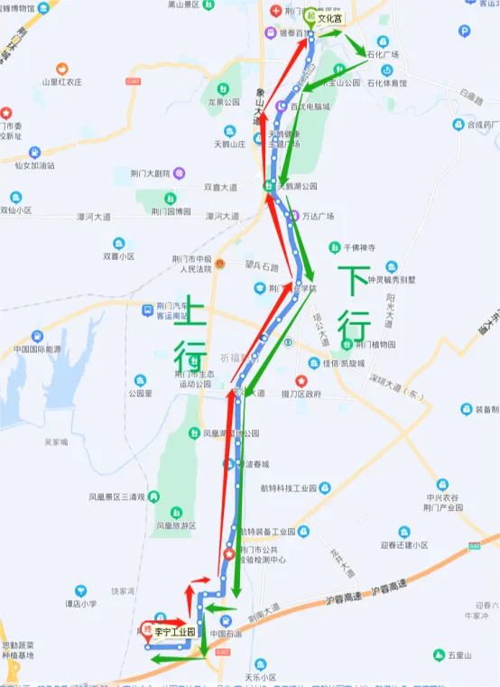 上行線(xiàn)路走向?yàn)椋焊A?鳳凰五路-創(chuàng)業(yè)四路-科技園路-創(chuàng)業(yè)二路-興隆大道-虎牙關(guān)大道-白云大道-文化宮。