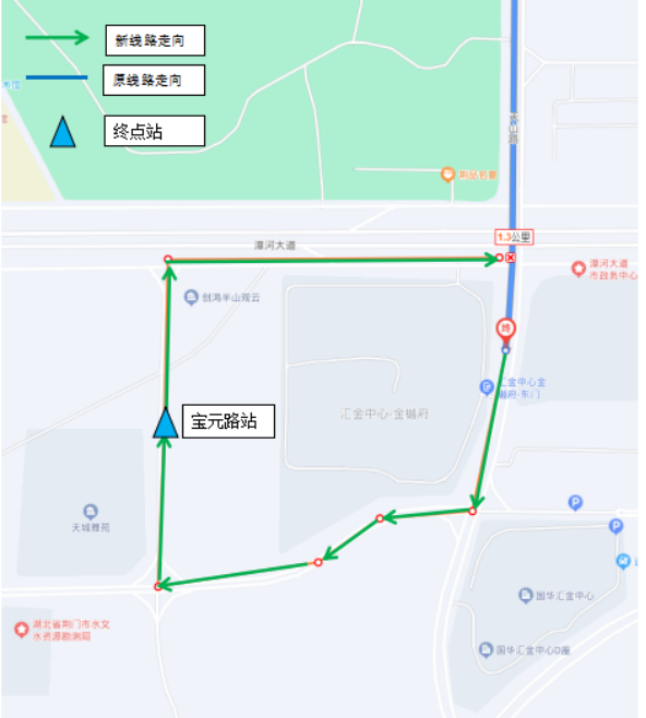 ◆??空军c(diǎn):原??空军c(diǎn)不變,撤銷天山路“匯金中心”東側(cè)始發(fā)站點(diǎn)。新增停靠站點(diǎn):寶元路